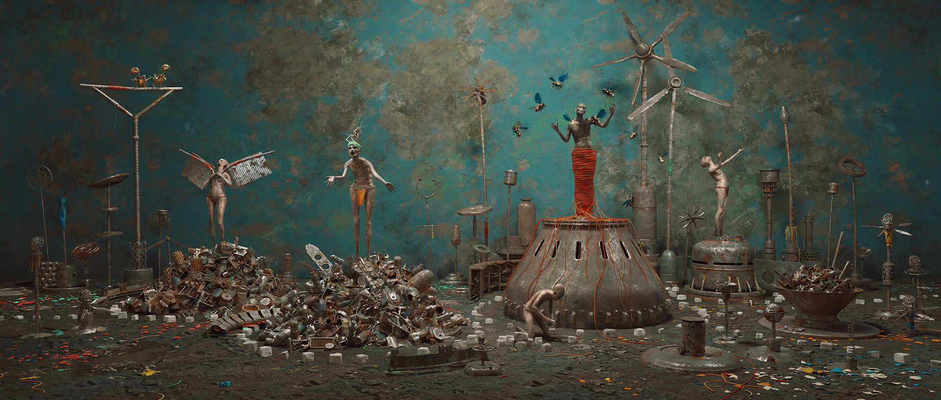 ARTIST STATEMENT | The series “Rhymes of Rupture,” developed over three years (2020–2023), consists of twelve digital 3D renderings forming a visual cycle that explores the increasing fragmentation of contemporary society. Set in a world shaped by alienation, its central theme is the search for identity. Here, beings and creatures of all kinds struggle for recognition and representation. Symbolism and composition are not merely aesthetic tools but elements of a layered narrative—one that unfolds not linearly, but intuitively.